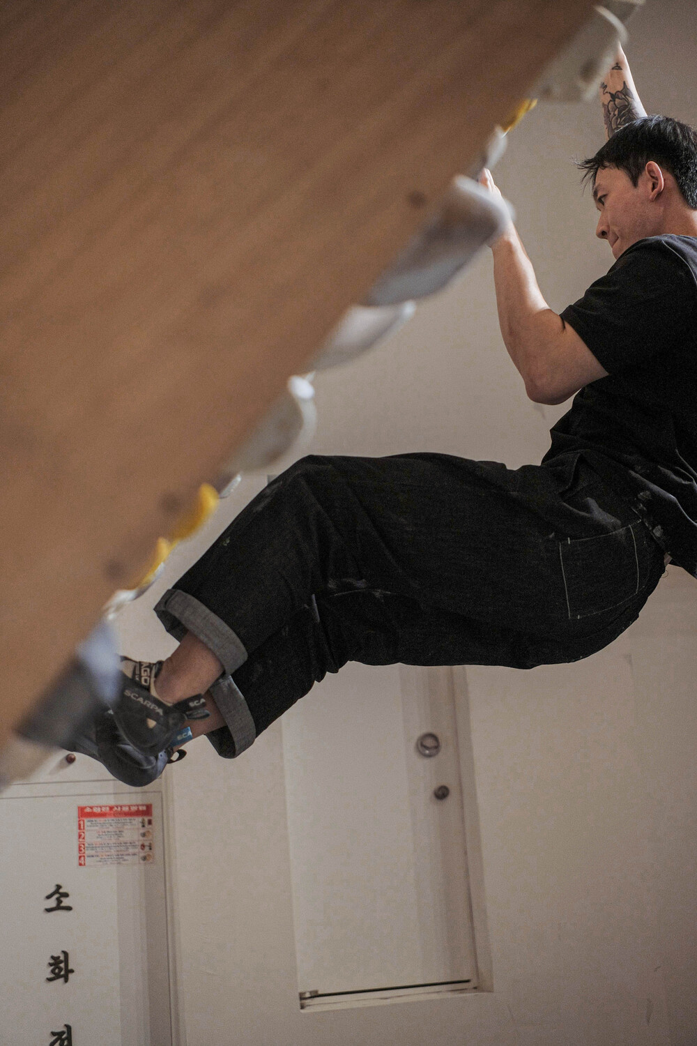 릴렉스 밴딩 클라이밍 데님 팬츠 블랙 레귤러핏