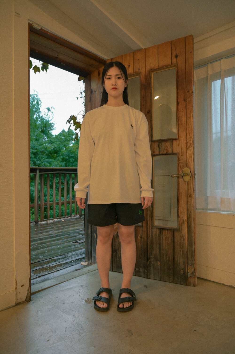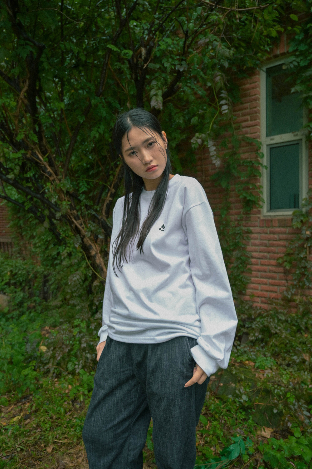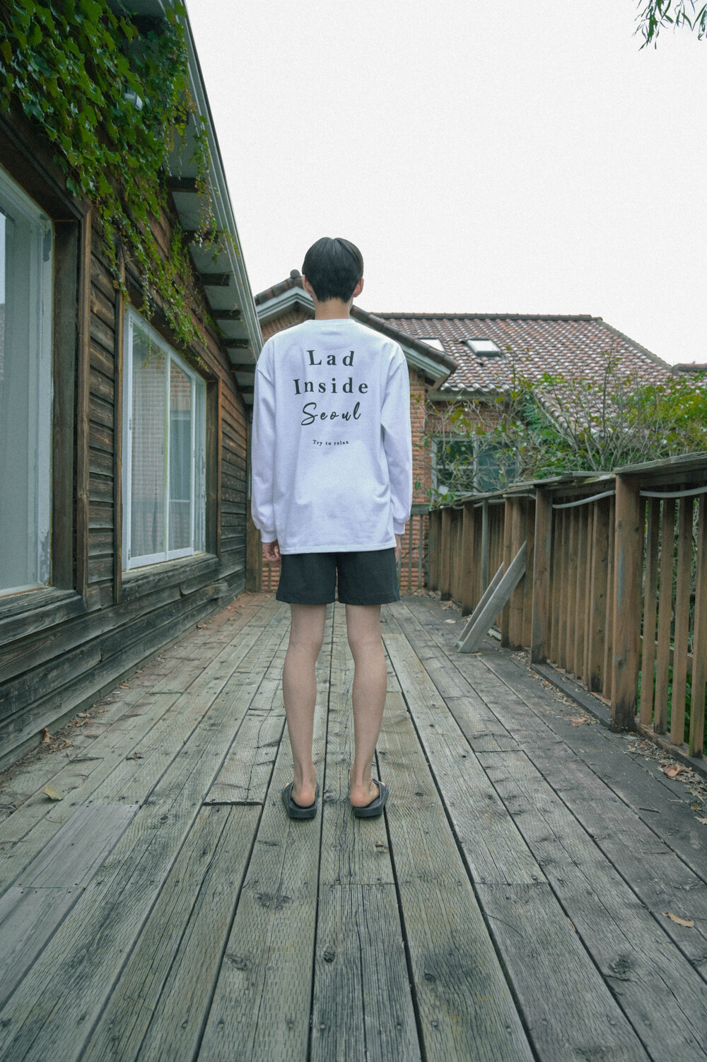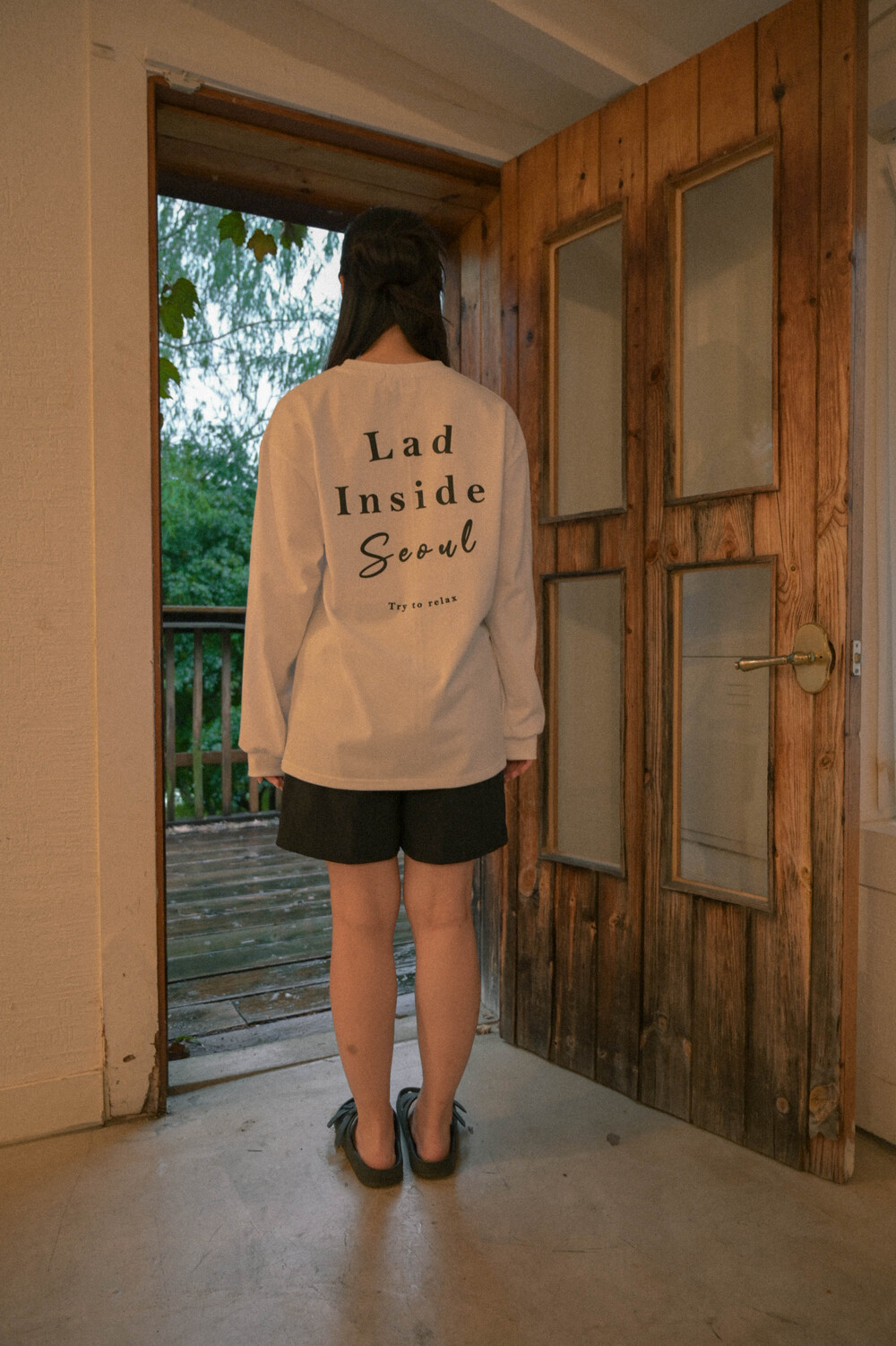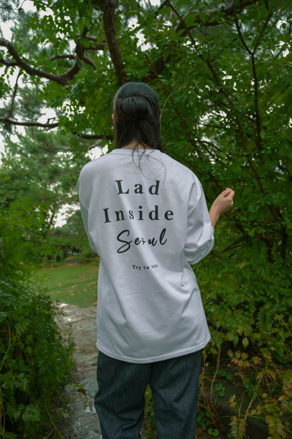 서울 레터링 긴팔 티셔츠 화이트
