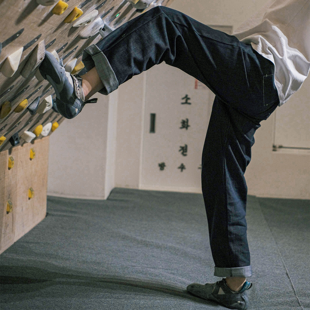 릴렉스 밴딩 클라이밍 데님 팬츠 블루 레귤러핏 M