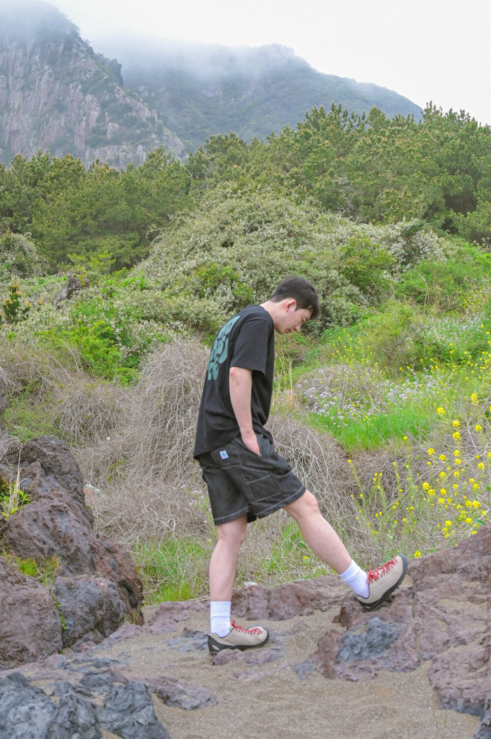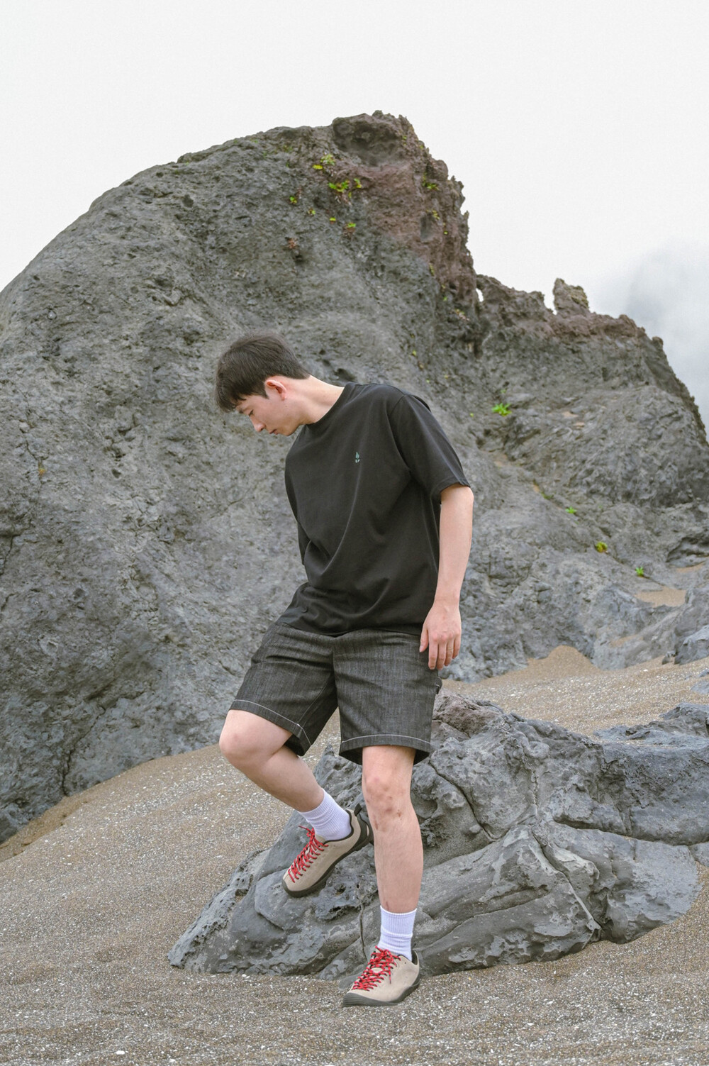 카펜터 데님 반바지 블랙